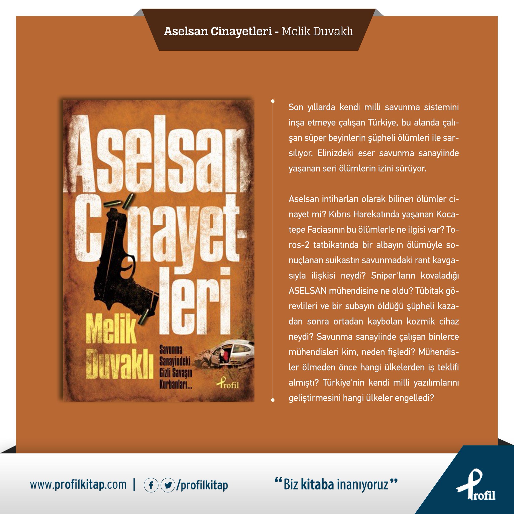 İlk baskı yılı. Melik duvaklı genel koordinatör. Melik duvaklı adlı yazara ait aselsan cinayetleri kitabı kapıda ödeme taksit seçenekleri ve 30 indirimli sözcü kitabevi nden satın alabilirsiniz. Başlarda çok önemsenmeyen fakat ülkemizin deha beyinlerini bir arada toplayarak çok güzel çalışmalara imza atan kuruluş giderek gelişmeye başlamıştır.