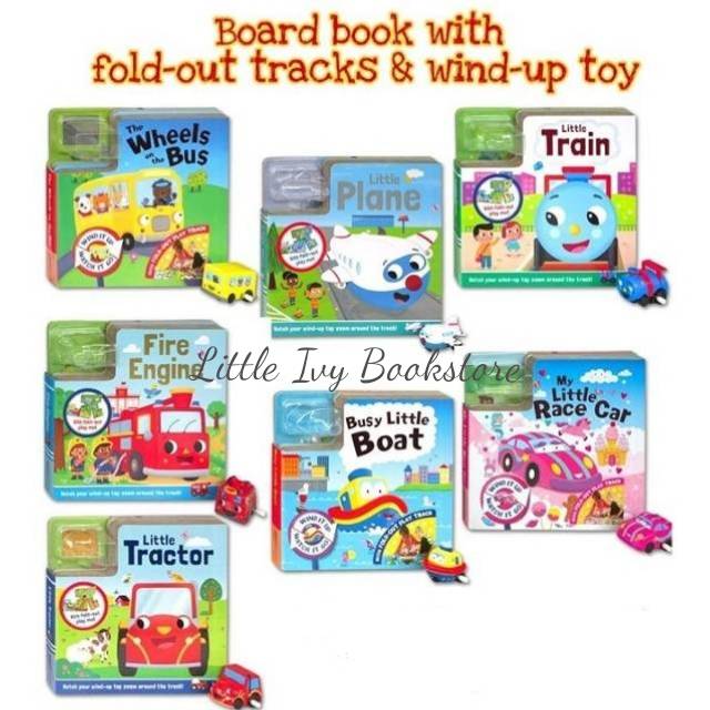 Board Book With Fold Out Play Track And Wind Up Toy Bus Tractor Train Plane Car Boat Fire Engine Shopee Indonesia