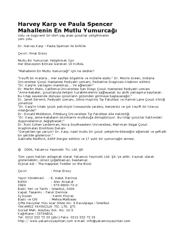 Harvey Karp Ve Paula Spencer Mahallenin En Mutlu Yumurcagi Uslu Ve Ozguvenli Bir Dort Yas Arasi Cocuklar Yetistirmenin Yeni Yolu Pdf Ucretsiz Indirin