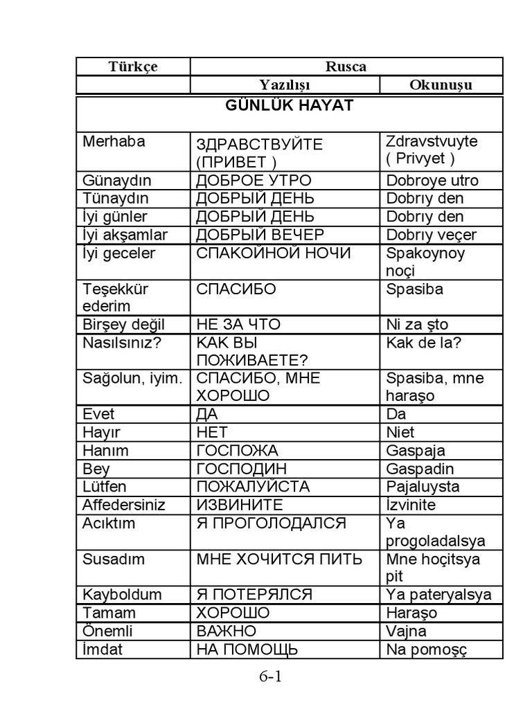 Rusca Turkce Ogreniyorum Rusca Baslangic Kelimeler