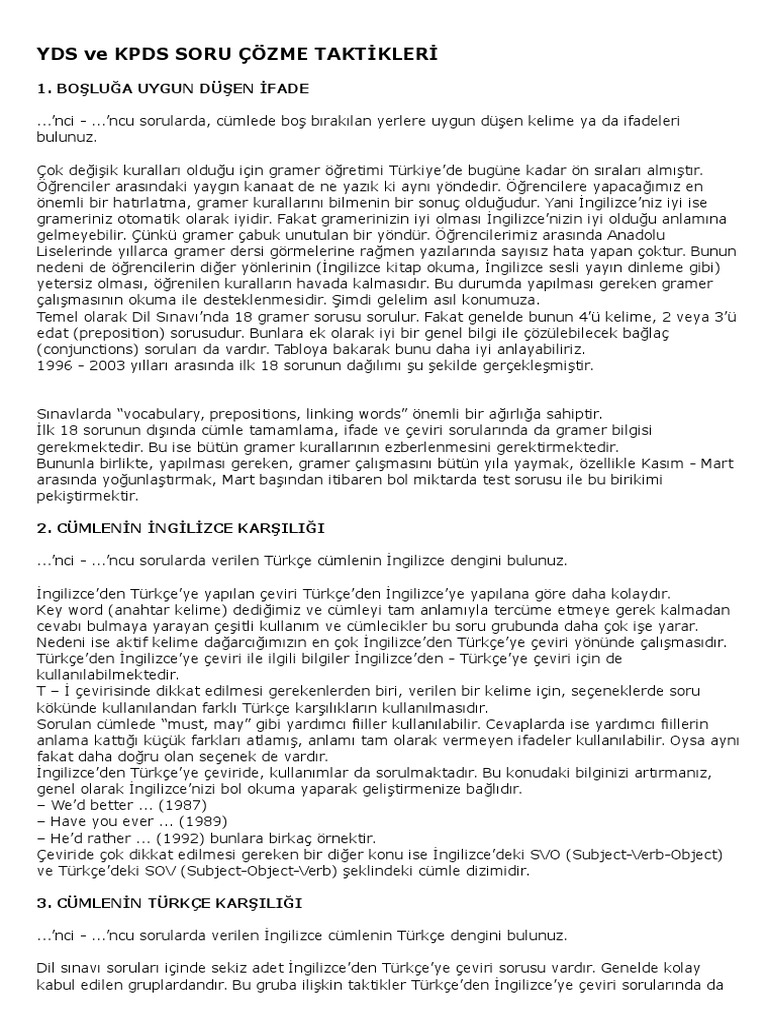 Yds Ingilizce Sinav Taktikleri